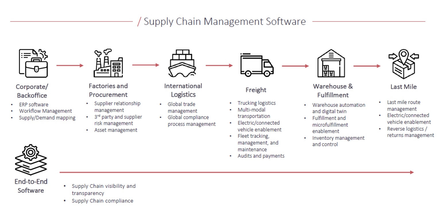 The Supply Chain market is large and presents a significant opportunity for disruption, with opportunities for both SaaS and tech-enabled services. This market demonstrates an incredible opportunity for virality, as companies are able to target one-to-many sales and penetrate an entire supplier network. Companies that we see succeed are those that either focus on a specific step of the supply chain or provide full supply chain visibility for a specific vertical. For example, Volition portfolio companies Tracelink and Assent are both very verticalized supply chain visibility, traceability, and compliance solutions.
